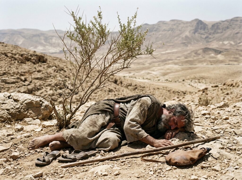 갈멜 산의 승리 뒤에 엘리야는 번아웃으로 쓰러졌습니다.