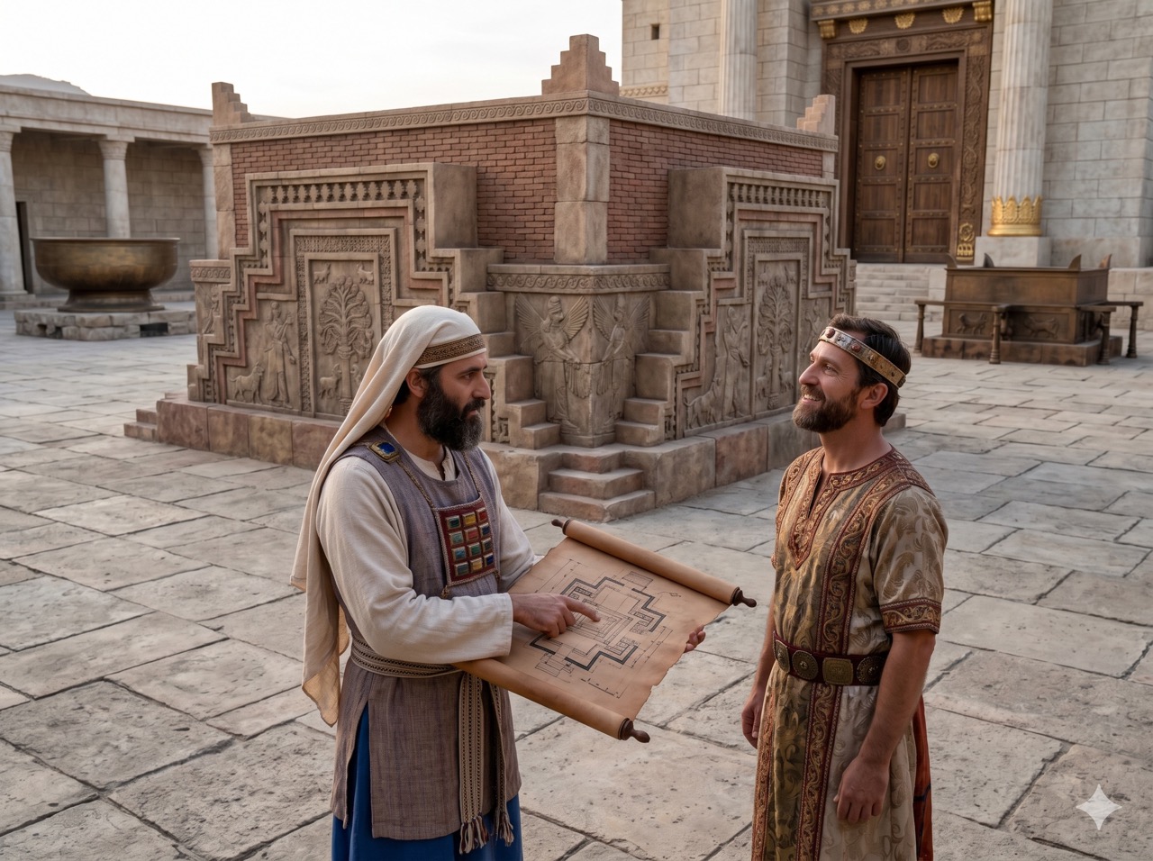 “아하스 왕은 앗시리아의 디글랏빌레셀 왕을 만나려고 다마스쿠스로 갔다. 그는 그 곳 다마스쿠스에 있는 제단을 보고, 그 제단의 모형과 도본을 세밀하게 그려서, 우리야 제사장에게 보냈다. 그래서 우리야 제사장은, 아하스 왕이 다마스쿠스로부터 보내 온 것을 따라서, 제단을 만들었다. 우리야 제사장은 아하스 왕이 다마스쿠스로부터 돌아오기 전에 제단 건축을 모두 완성하였다.”